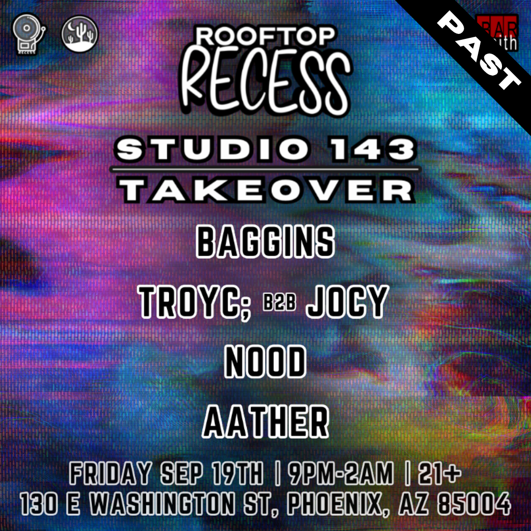 Join Studio 143 on the 14th floor of The Canopy hotel for "Afterglow"! Experience the glow of Tempe just after sunset as the sky turns a deep purple over a blanket of twinkling city lights. This evening mix session will be expertly curated by a lineup of some of Arizona's most talented DJs and producers.